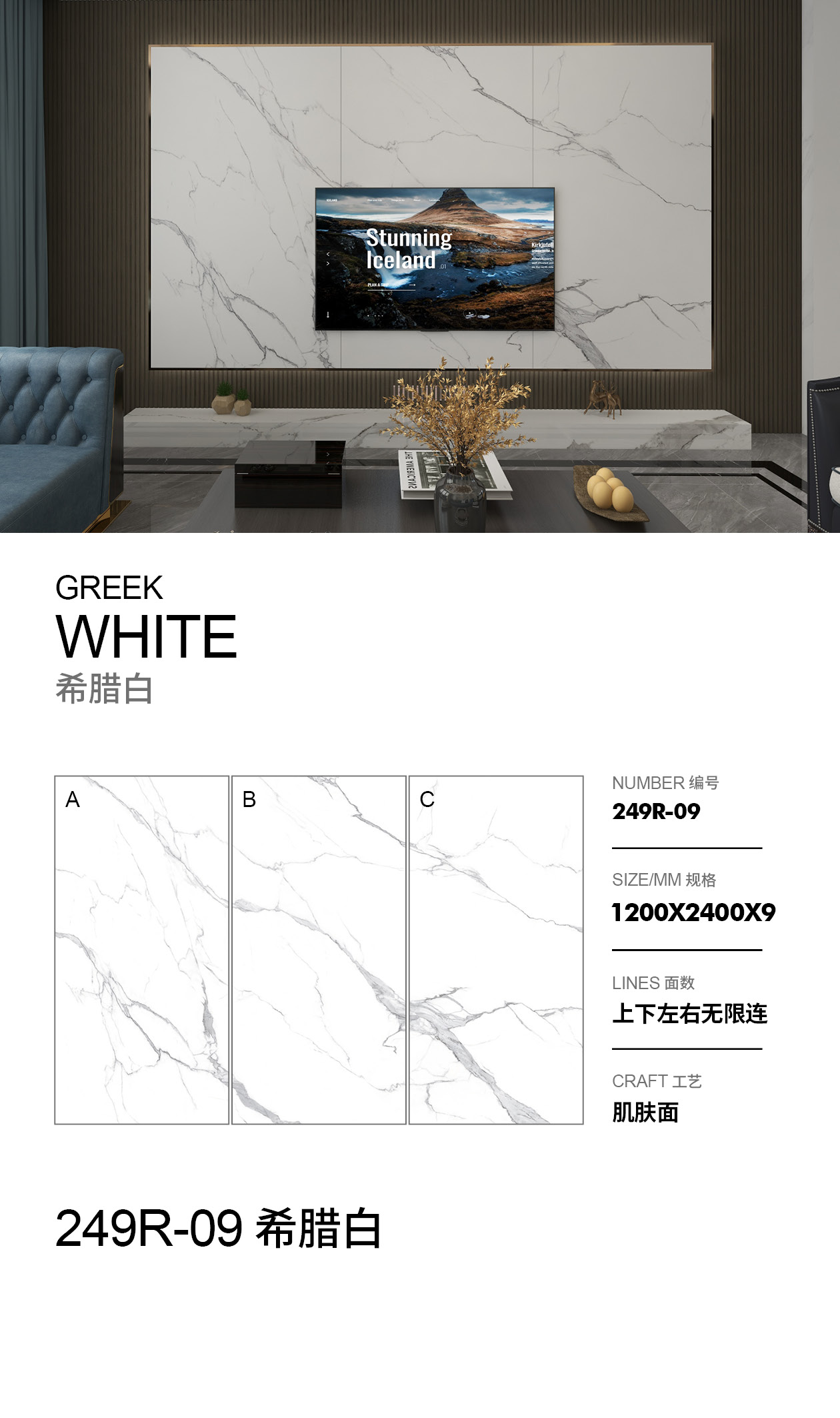 - الأبعاد: 1200 × 2400 مم (تنسيق كبير للتركيبات السلسة)