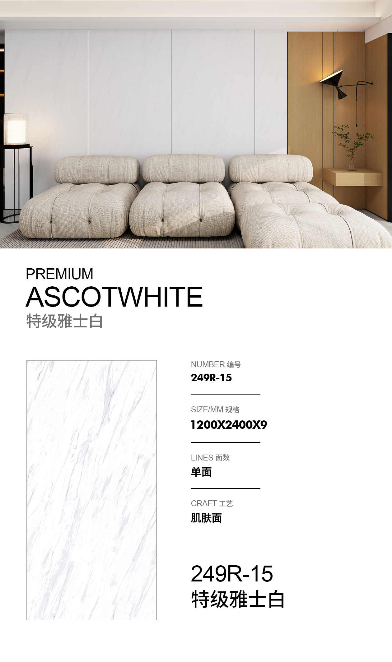 - كفاءة التنسيق الكبيرة: يوفر الحجم 1200 × 2400 مم تغطية مثالية مع الحد الأدنى من النفايات، ويقلل من عدد الطبقات والمفاصل أثناء التثبيت، ويخلق مظهرًا سلسًا ومتماسكًا عبر الأسطح الكبيرة.