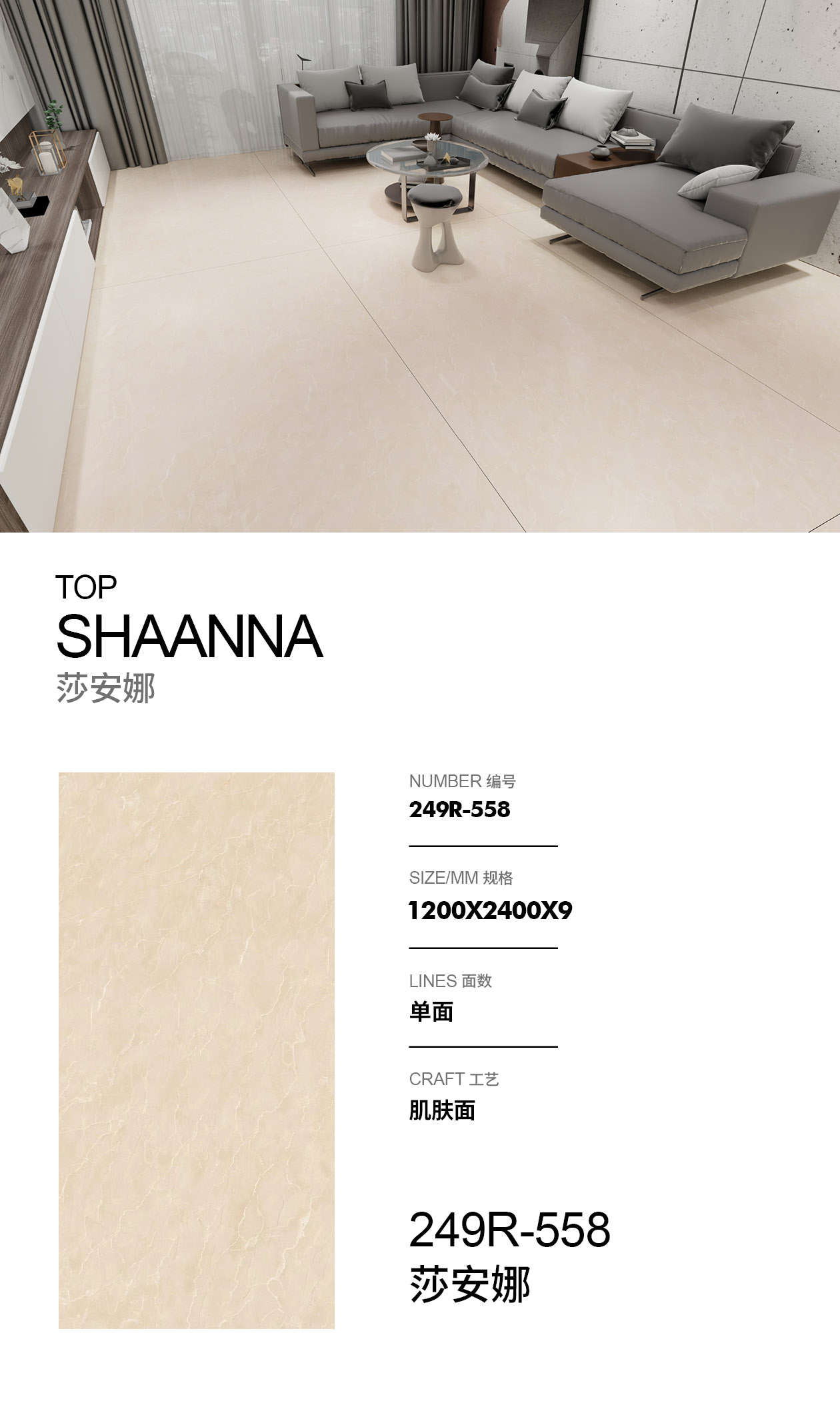 ناعم غير لامع يشبه البشرة — سانا | 1200×2400 ملم | سطح ملموس ممتاز